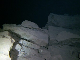 Doch dann, die „Blaue Lagune„, das geflutete, alte Abbaugebiet. Es fällt in den Berg hin ab und ist durch die Stollen und Querungen gelöchert wie ein Käse. Anfänglich ist es eine Art Kaverne, doch nach ein paar Metern fällt die Decke ins Wasser und es wird zu einem Höhlenabenteuer. Am Ende der des Abbaus quert ein tiefergelegener Querstollen (Strecke) in etwa 20m. Hier wurde wohl das gewonnen Eisenerz abtransportiert. Durch kleine Durchstiche kann man hineintauchen, es beginnt der „Full Cave“ Bereich mit Führungsleine. Ein phantastisches Gefühl durch diese Stollen zu tauchen. Man wurde mit tollen Sichtweiten belohnt.