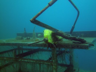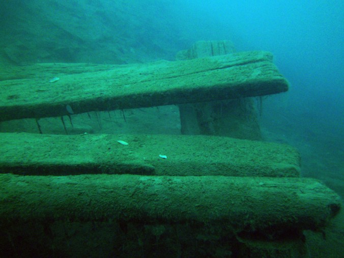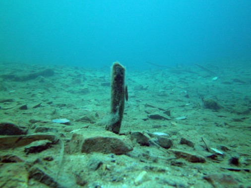 Der erste Tauchgang führte uns somit auch durch alle drei Seen. Beim zweiten Tauchgang umrundeten wir den Steinbruchsee in Richtung West. Das Wasser war bis etwa 12m herrlich klar und hatte seine typische türkise Färbung. Tiefer wurde es milchig, bei 21m wurde die Sicht dann regelrecht schlecht.