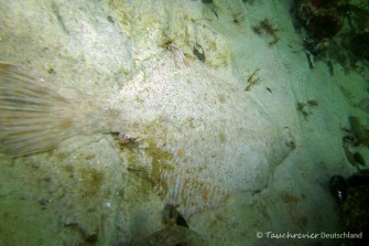 Wir folgen Joachims Empfehlungen und tauchen einen ausgiebigen Rechteckkurs, Nord – Ost – Süd – West. Über Sandbänke, Seegraswiesen, muschelbewachsenen Feldsteinen, Mergelbänken und Steinwällen tauchend, scannten wir bei einer guten Sicht von 5-6m die Ostsee nach Seehasen ab. Flunder, Scholle, Grundel, Schnecken, Krabbelgetier – alles da, nur leider keine Seehasen. Egal, die Ostsee mit ihrer eigenen UW-Flora und Fauna hat immer etwas Besonderes, ein schöner Tauchgang.
