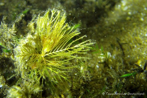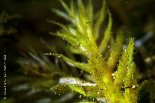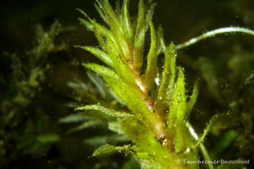 Nach gut 30min dann zurück nach Norden und Osten. Ein toter Wasservogel, möglicherweise ein Bleßhuhn liegt am Boden. Von Fischen keine Spur. Da müssen sie sein, schon wegen der Kormorane. Ein einzelner Krebs streift durchs Brunnenmoos. Auffällig viele Köcherfliegenlarven in ihren individuellen Architektenhäusern sind unterwegs.