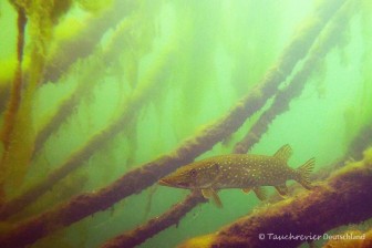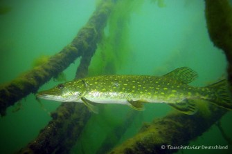 Möchte man einen unserer größten Räuber, den Hecht,  in unserem Tauchrevier unter Wasser beobachten, so ist der Straussee eine gute Adresse. Hier bekommt man Hechtgarantie. Ich bin bereits viele Male im Straussee am Kulturpark getaucht und es gab keinen Tauchgang ohne diesen imposanten Raubfisch. Ein Grund ist sicher auch der reichlich vorhandene Futterfisch.