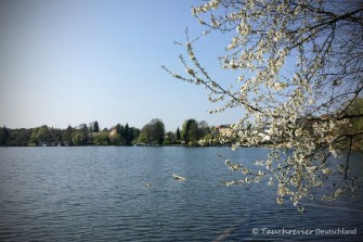 Gelandet bin ich dann am Peetzsee bei Grünheide. Zwischen Werlsee und Möllensee gelegen, bilden die Seen die Grünheider Seenkette, eine Binnenwasserstraße. Es gibt in den Ausläufern und Buchten aber durchaus ruhige Ecken. Im Westen finde ich einen guten PKW-Stellplatz und Einstieg. Der See spiegelt den wolkenlosen Himmel. Kormorane trockenen ihr Gefieder in der Sonne. Das Wasser sieht glasklar aus. Alles spricht für einen Erkundungstauchgang im Peetzsee.
