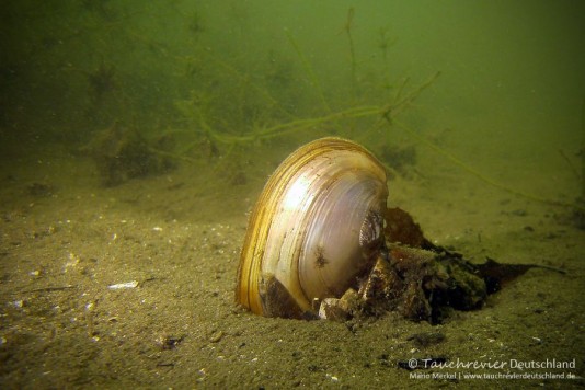 Alte im Wasser liegende Bäume sind von Dreikantmuscheln bevölkert. Ein Meer von Schalen am Grund. Auch hier kann ich Schleie beobachten, die sich an den Muscheln gütlich halten. Ich tauche weiter. Und überall das gleiche Bild. Wühlspuren, ausgerissenes Grün und stark sedimentierte Pflanzen. Ich treffe Fred. Wir kehren um. Er bestätigte mir meine Beobachtungen später an Land.