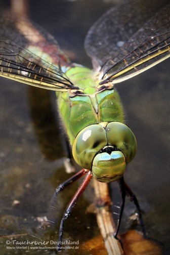 Auf meinen Erkundungen im Tauchrevier konnte ich schon viele dieser wundervollen Tiere beobachten. Ihr perfekter Körperbau und die Farbvielfalt faszinieren mich. In diesem Jahr habe ich feuerrote Exemplare der Großlibellen am Wasser entdeckt, Einwanderer aus dem südlichen Raum. Jedes Körperteil dieser Feuerlibelle ist wahrlich feuerrot. Wunderschön.