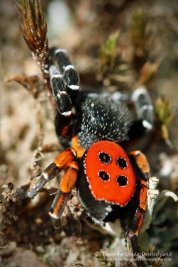 Nein, die Rote Röhrenspinne war mir bis dato absolut unbekannt. Erst beim Durchstöbern von Naturfotografie-Foren im Internet bin ich auf dieses wundervolle Tier aufmerksam geworden. Was für eine hübsche Spezies. Insbesondere das Männchen, mit seiner markanten roten Zeichnung ist als Motiv bei Naturfotografen sehr beliebt, umso mehr da das Vorkommen in Deutschland sehr selten und die Art stark gefährdet ist.