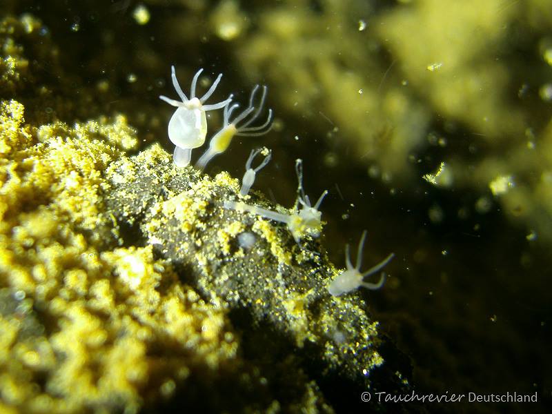 Süßwasserpolypen bewegen sich fort, sie wandern ganze 2 cm am Tag. Sich von der Strömung treiben zu lassen ist jedoch die bequemere Art eines Standortwechsels.