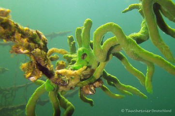 Ich bin immer wieder von diesen auf Holz oder Steinen festsitzenden „Gewächsen“ unter Wasser begeistert. So bizarr und zerbrechlich können sie dennoch große Ausmaße annehmen. Da diese Tiere recht anspruchsvoll sind, könnt ihr davon ausgehen, dass die Wasserqualität der Gewässer in dem ihr sie antrefft, gut ist. Ihr Skelett besteht aus organischen Fasern und Kieselnadeln, zu denen sie auch zerfallen.