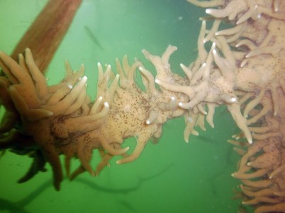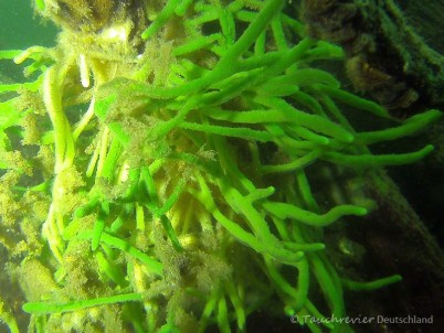 Ich bin immer wieder von diesen auf Holz oder Steinen festsitzenden „Gewächsen“ unter Wasser begeistert. So bizarr und zerbrechlich können sie dennoch große Ausmaße annehmen. Da diese Tiere recht anspruchsvoll sind, könnt ihr davon ausgehen, dass die Wasserqualität der Gewässer in dem ihr sie antrefft, gut ist. Ihr Skelett besteht aus organischen Fasern und Kieselnadeln, zu denen sie auch zerfallen.