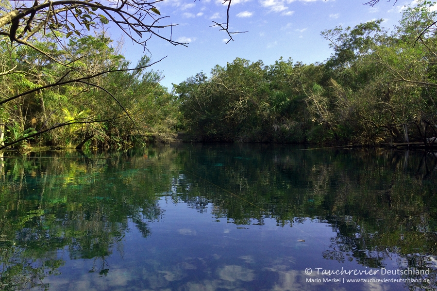 Gilbran, unser mexikanischer Tauchguide, bringt uns zur ersten Cenote Dos Ojos. Schon allein der oberirdische Anblick ist wundervoll. Glasklares, blauschimmerndes Wasser, eingefasst vom grauen Kalkstein und umsäumt vom Grün des Dschungels. Wir freuen uns. Wir werden hier zwei Tauchgänge durchführen. Eine besondere, eine einzigartige Unterwasserwelt. Ich werde erst gar nicht versuchen, die Schönheit dieser Unterwasserlandschaft in Worte zu fassen. Es wird mir eh nicht gelingen. Zugegeben, dieser Platz ist auch Dank der Schnorchelgäste gut besucht. Aber auch das wird sich ändern.