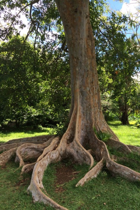 Links fahren, links schalten, rechts blinken  – der erste Tag im mauritianischen Verkehr fordert meine volle Aufmerksamkeit. Am dritten Tag wurde der Scheibenwischer nur noch einmal zur Richtungswechselanzeige missbraucht.  Die Autobahn verbindet den Norden mit dem Süden. Wir besuchen die wundervollen Nationalparks mit ausgedehnten Wäldern, Bergen und beeindruckenden Wasserfällen. So muss es ausgesehen haben, bevor der Mensch die Insel betrat und sich zu Eigen machte. Jetzt dominieren leider endlose, monotone Zuckerrohrfelder das Landschaftsbild. Der endemische, flugunfähige Vogel Dodo erlitt bereits im 17. Jahrhundert das gleiche Schicksal wie der Kiwi. Jenseits der Kulturpflanzen fasziniert mich die unglaubliche Baumvielfalt. Die Küsten sind gesäumt mit unterschiedlichen Wuchsformen. Im Botanischen Garten von Pampelmousses lassen sich gigantische Zeitzeugen aus vergangenen Tagen bestaunen.
