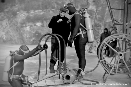 Filmschnipsel zeigen die fröhliche und kalte Weihnachtsfeier vom 22.Dezember 1969. Geselligkeit stand schon damals im Mittelpunkt. 1973 entdeckten die „jungen Wilden“ das Fahrstuhlfahren für sich. Unter Zuhilfenahme eines großen Tanks schoss sich ein „Pilot“ aus 30 m Tiefe zur Oberfläche. Bremser kontrollierten soweit möglich, den Aufstieg.