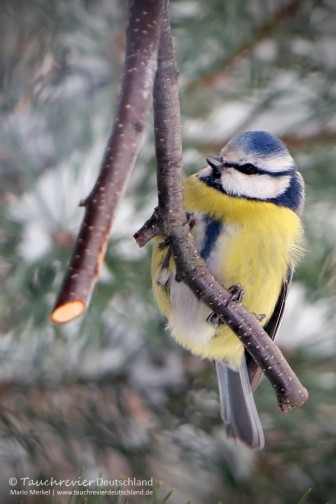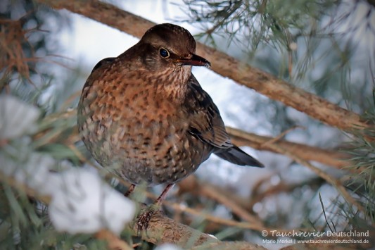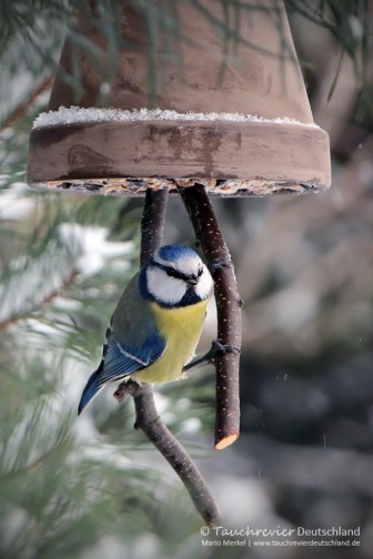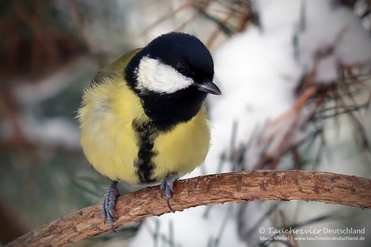 Wintervögel, Singvögel im Tauchrevier Deutschland.