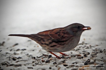 Diese Futterglocken hängen nun ebenso vor meinem Fenster und erfreuen sich insbesondere bei den Meisenarten großer Beliebtheit. Jetzt mit dem ersten Schnee ist ein wildes Treiben, ein Kommen und Gehen angesagt. Neben den üblichen Verdächtigen wie Blau- und Kohlmeise, Amsel und Sperling besuchen uns diesmal auch ausgesprochen seltene Gäste. Heckenbraunellen, Drosseln, Rotkehlchen, Stieglitz, Erlenzeisig, alle sind sie da und geben sich ein Stelldichein.