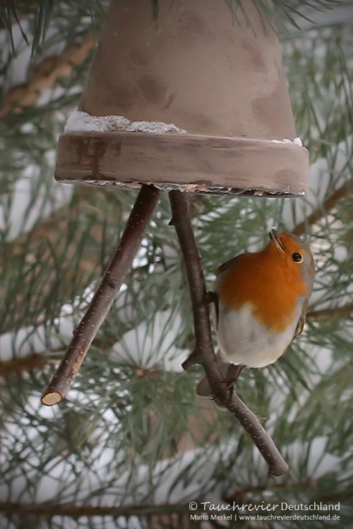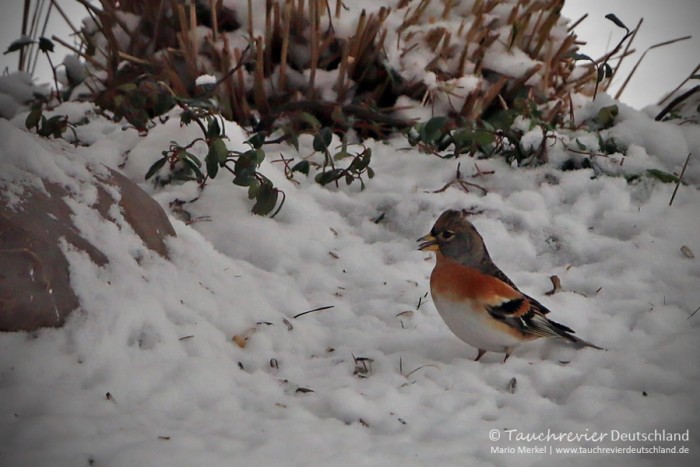 Wintervögel, Singvögel im Tauchrevier Deutschland.